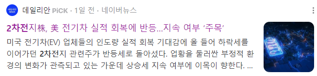 7. 2차전지주, 미 전기차 실적 회복에 반등 : 전기차 관련주