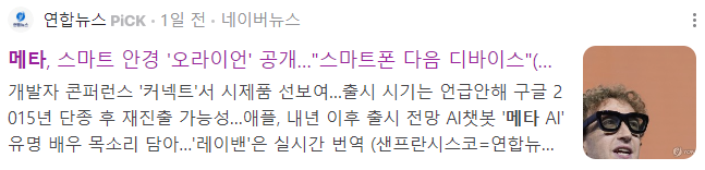 1. 메타, 스마트 안경 '오라이언' 공개… "스마트폰 다음 디바이스" : 메타버스 / AR 관련주