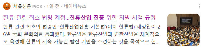 6. 한류 관련 최초 법령 제정… 한류산업진흥기본법 국회 통과 : 엔터테인먼트 관련주